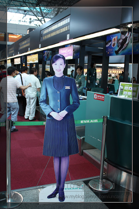 終於,6/4來臨了,我們7:30AM出門前往機場,到了長榮櫃台時,迎接我們的就是這位美麗的長榮小姐。