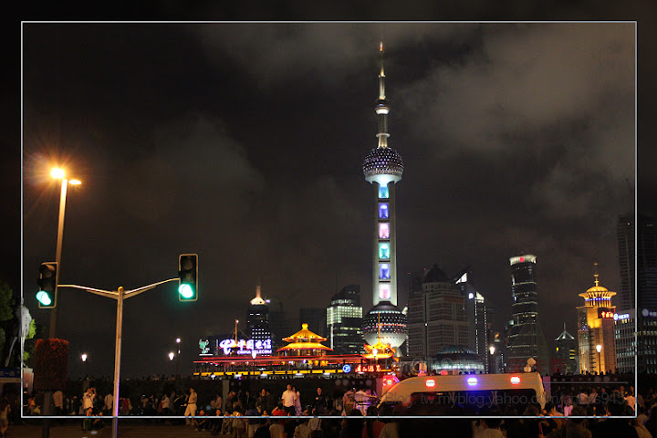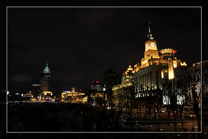 走了快20多分後,終於抵達“命中注定我愛你”中的場景-外灘。哇!這是什麼情形,怎麼一點欣賞夜景的氣氛都沒有呢?