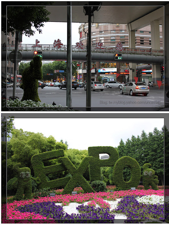 黃陂南路站附近,還以世博吉祥物來綠化環境