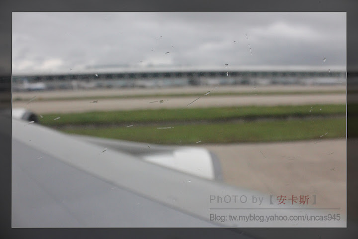 飛行將近2小時後,我們即將抵達上海浦東機場,可是窗外卻飄著小雨滴 。
