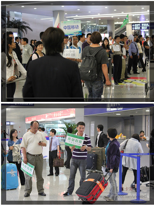 糟糕!這麼多人舉牌,長榮假期在那兒呢?喔,看到了看到了。