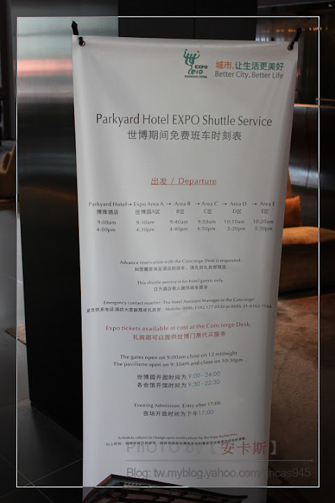 飯店有提供世博去程的接送服務,不過我們都用不到!