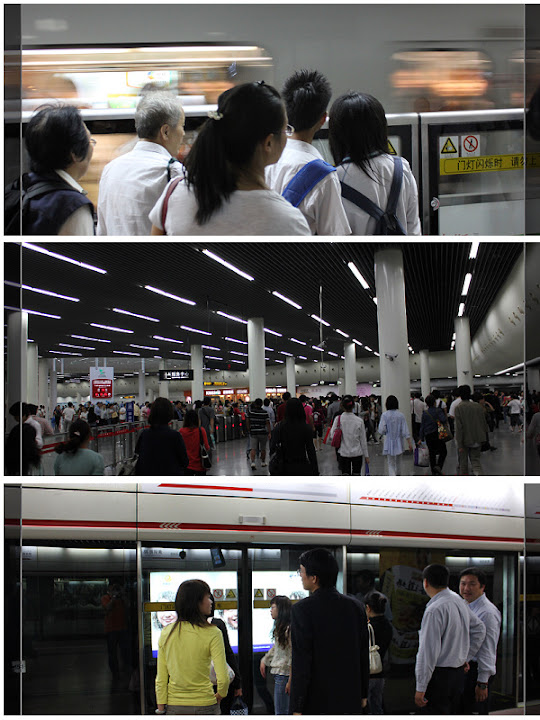找到地鐵站後繼續我們的轉程之旅, 由地鐵1號線的黃陂南路站搭至人民廣場站後轉搭2號線至南京東路站,哇!這時大家都已下班了,台北的人潮跟這ㄦ可是差很多~很多~