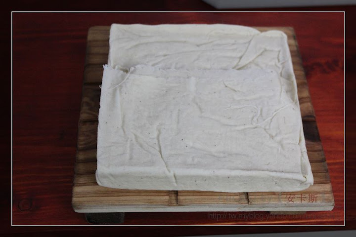 嗯~,豆腐完成了,只是薄了一點,下次原料*2應該會厚一些